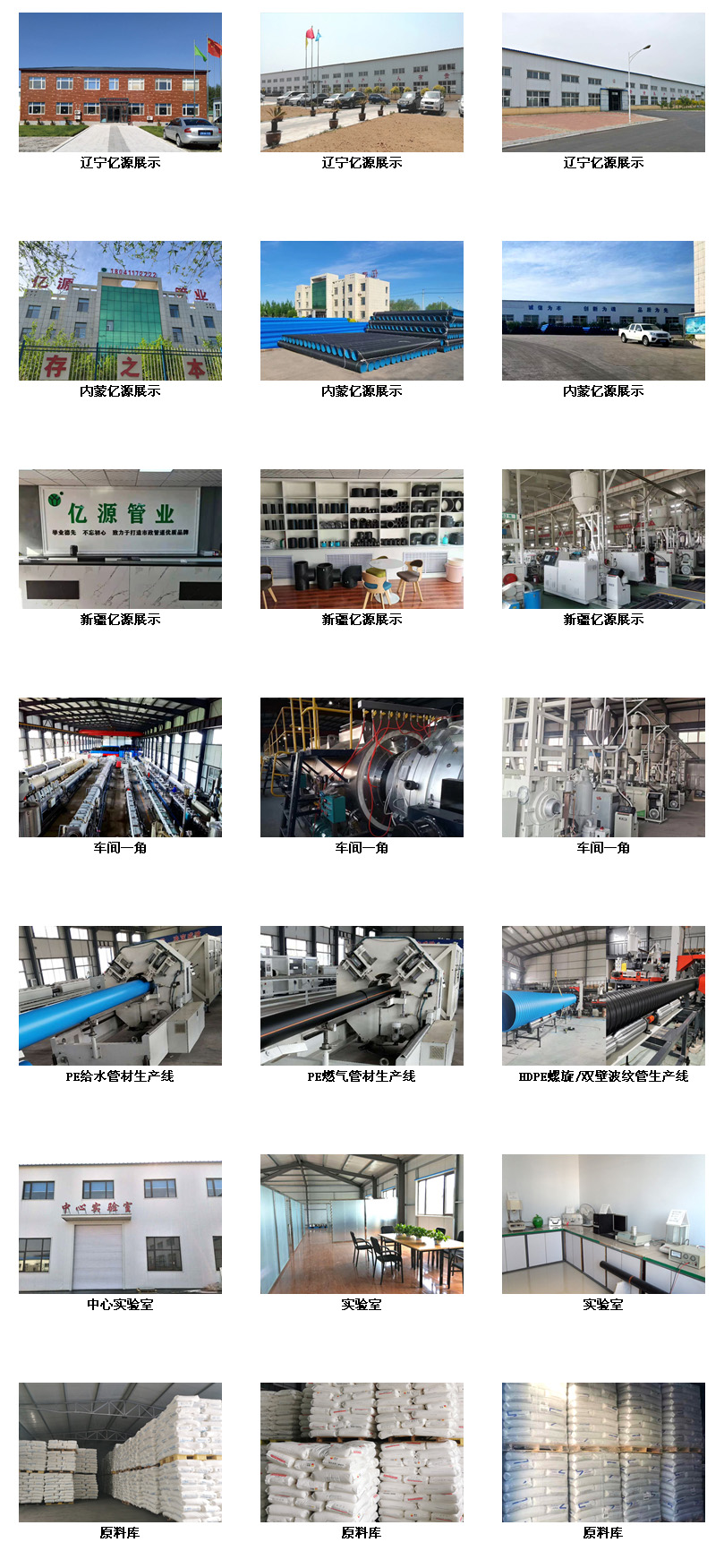 公司目前主營產品有:聚乙烯(PE)給水管材、聚乙烯(PE)燃氣管材、PERT二型熱力管材、PPR冷熱水管材、聚乙烯鋼帶增強螺旋波紋管材、聚乙烯雙壁波紋管材、MPP電力管材等。產品廣泛應用于海綿城市建設、綜合管廊建設、天然氣管網建設、大型工礦企業建設、水利工程建設、城鎮自來水管網建設、污水處理廠建設等諸多領域。